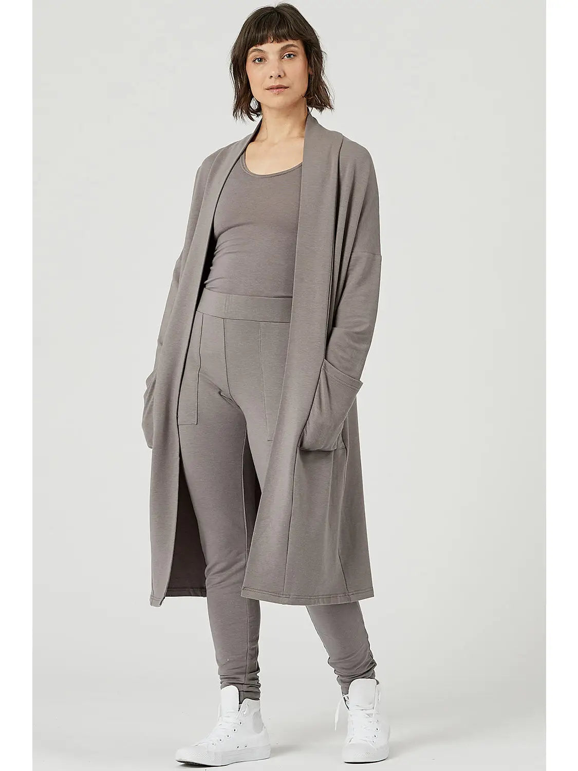 Elevate your style with our Tencel Long Cardigan, complete with pockets for added convenience. Lounge in luxury and exude sophistication with every wear, making it the perfect match for everything in your wardrobe. Crafted for comfort and versatility, it's your go-to fashion essential. Discover the elegance of Tencel in this timeless piece.