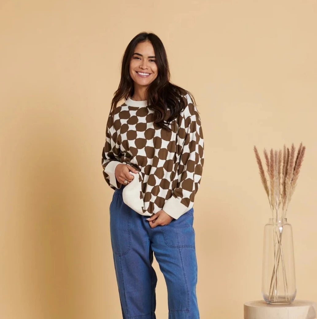 This oversized, print sweater puts the FUN in functional as the temperatures start to drop.
