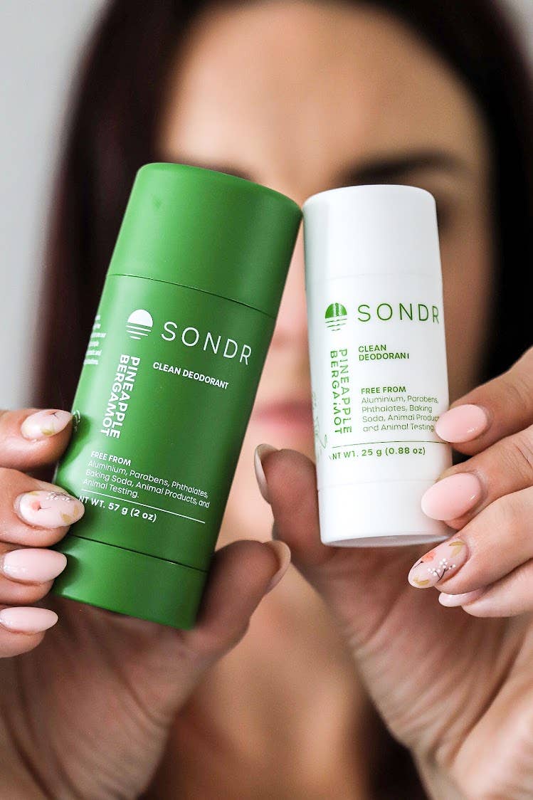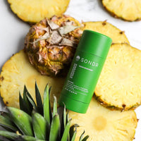 Picture this: you just crushed your favourite HIIT class and grab a fresh, icy smoothie. You feel energized, refreshed, and ready to conquer the rest of your day. That's our pineapple bergamot deodorant. Get energized with sweet, fruity and slightly spicy pineapple combined with the epic tart and floral notes of bergamot. Pineapple bergamot deodorant, like all other SONDR deos, is, and always will be free from aluminum, parabens, phthalates, baking soda and of course, animal testing and products.