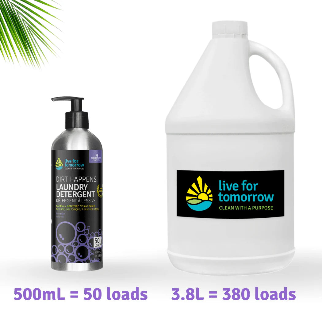 Kick toxins to the curb using Live for Tomorrow (LFT)’s all-natural Coconut based “Dirt Happens” liquid laundry detergent in Rosemary Orange Blossom. This refreshing combination is derived from 100% pure essential oils. And 8X concentrated means you’ll get 50 wash loads from one small bottle, or 150+ from the refill sizes!