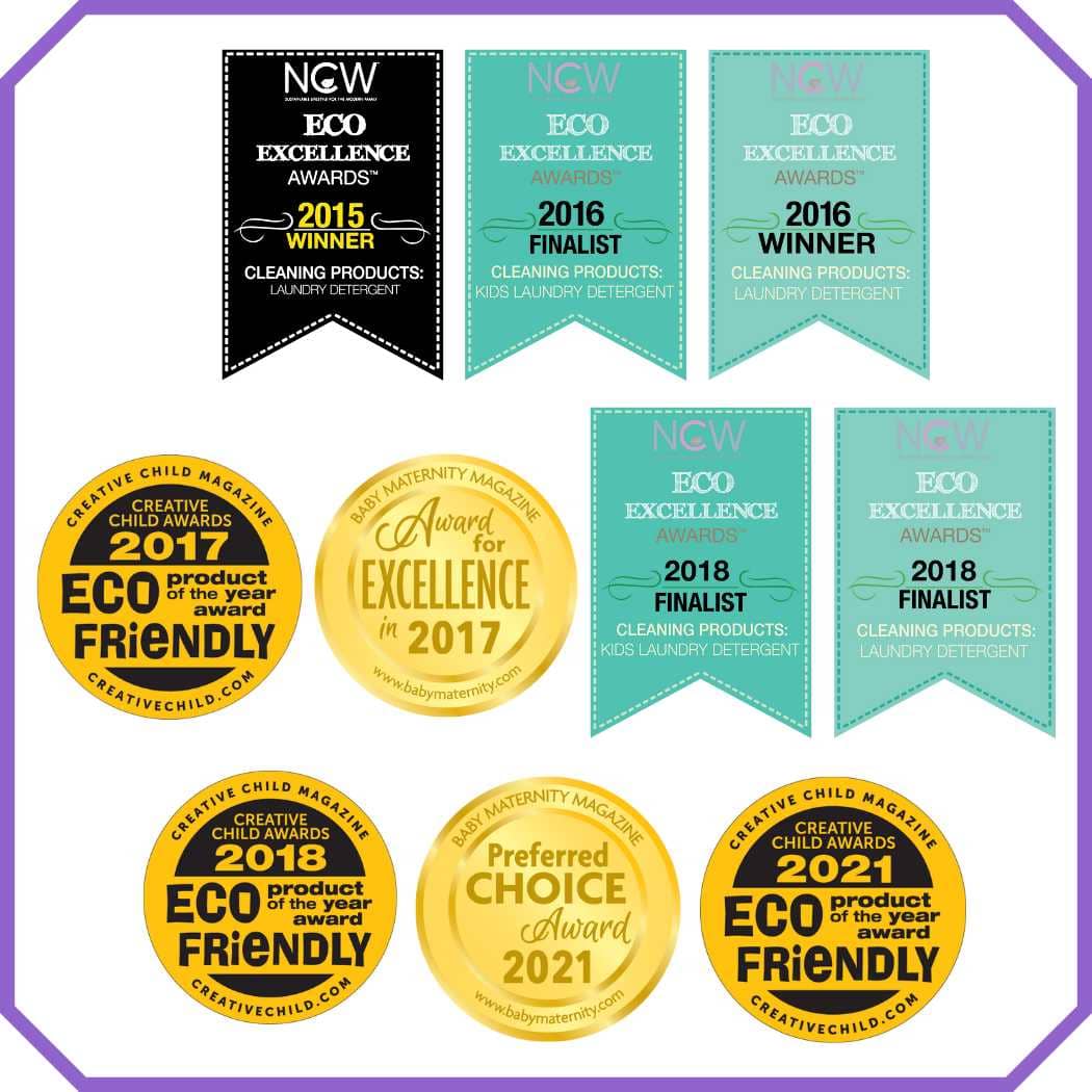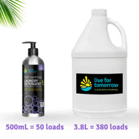 An all-natural hypoallergenic laundry soap, packaged in eco-friendly refillable/recyclable bottle.