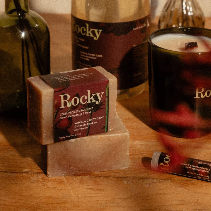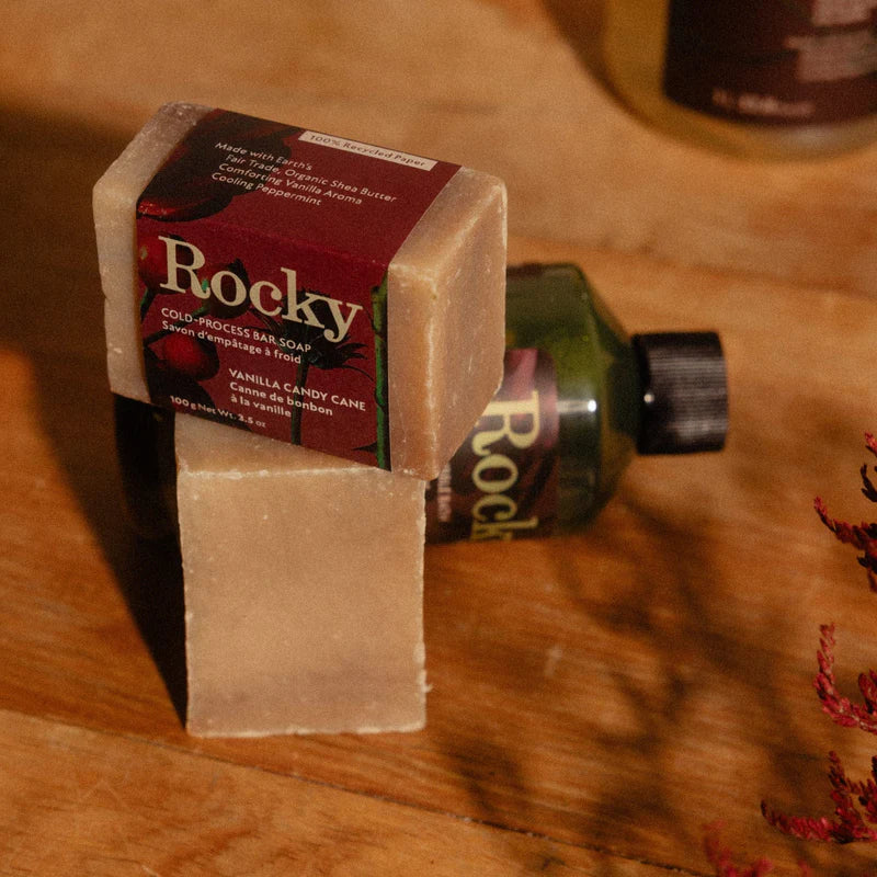 A cold-process bar soap in our limited-edition Vanilla Candy Cane scent. Crafted from nature, this nostalgic holiday blend combines the refreshing coolness of peppermint essential oil with the comforting warmth of natural vanilla aroma. Each bar is made with our signature blend of shea butter, coconut, and olive oils to create a rich, moisturizing lather that leaves skin soft and refreshed.