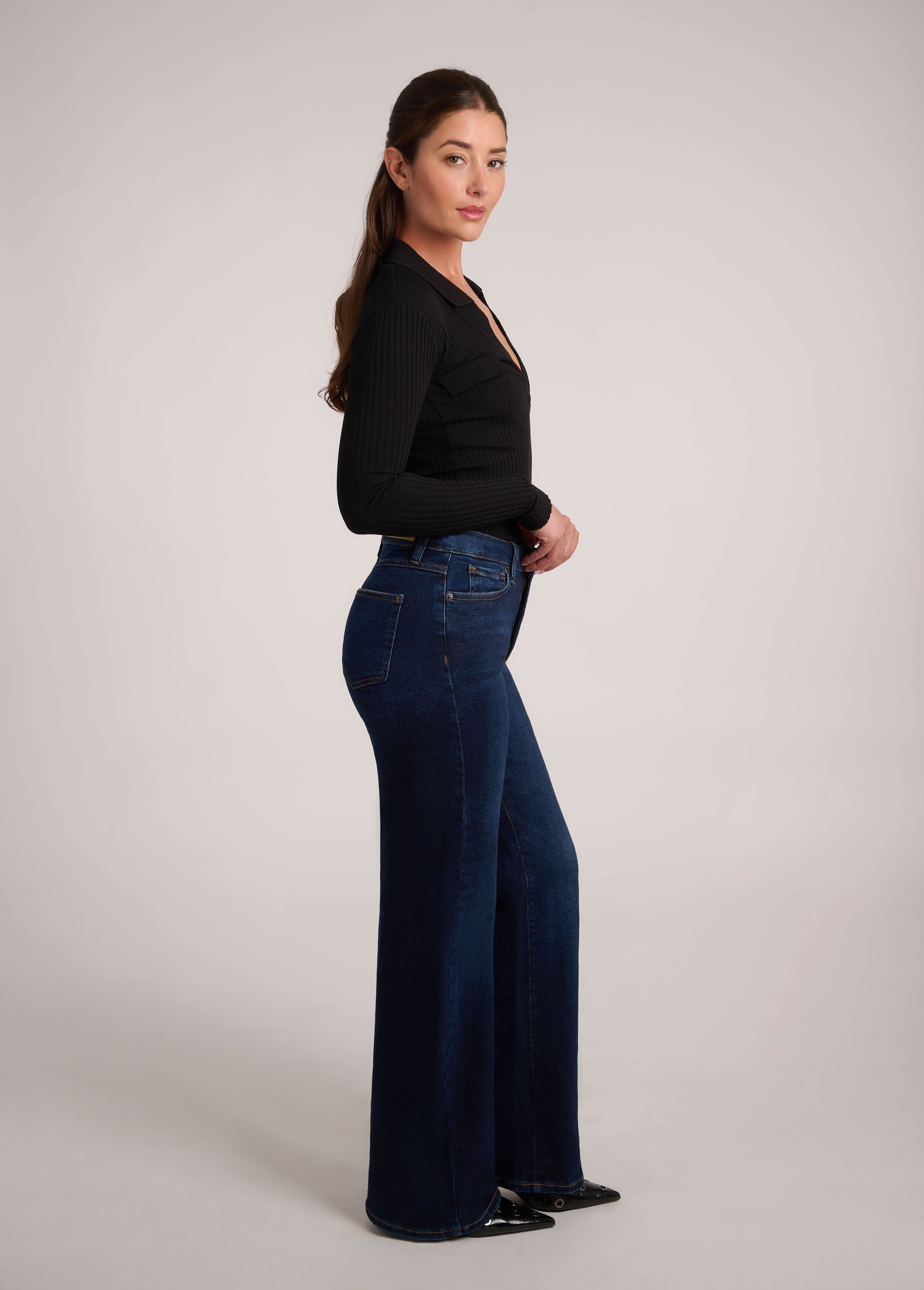 Introducing Maia the new wide leg denim — the dark wash jean that moves with you and means business. Designed for comfort and tailored enough for any dress code, the long-leg design adds instant polish to every step.